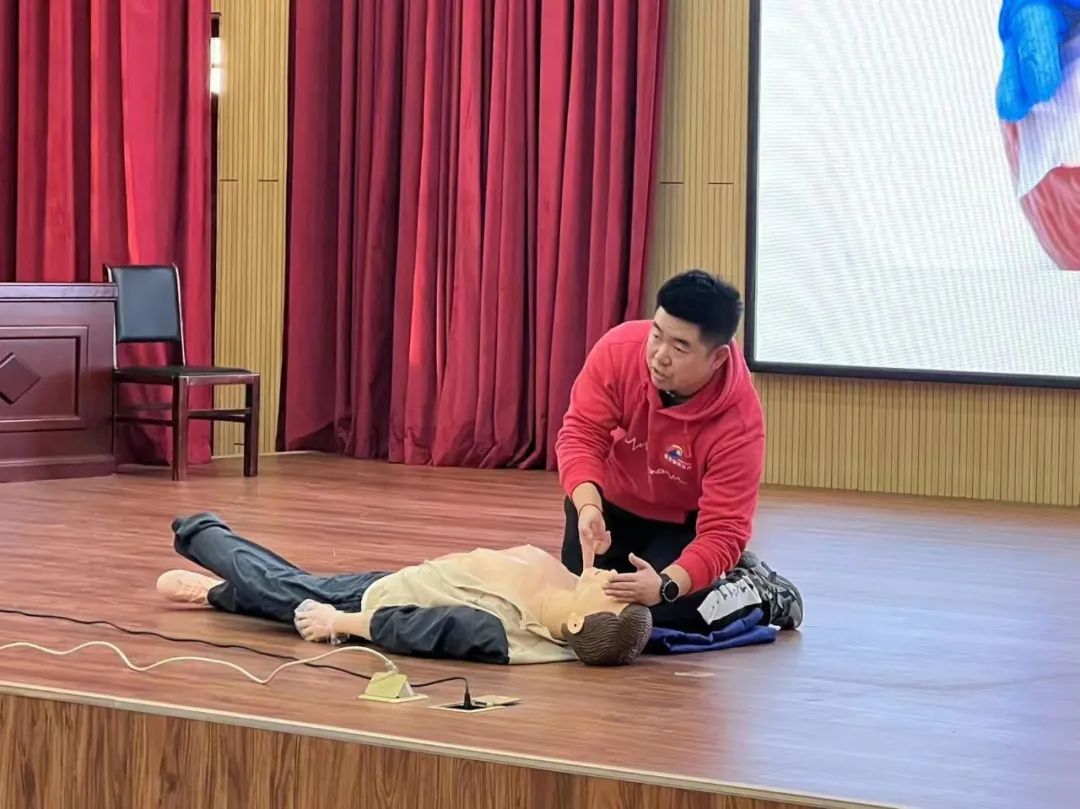 此次培训采取理论知识讲解与救护技能实际操作相结合的方式,利用人体模型,操作演示了心肺复苏技能、气道异物阻塞应急救护技能和AED操作使用方法。授课过程生动、有趣、通俗易懂,现场互动频繁、气氛热烈。