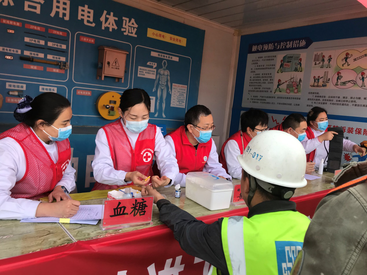 义诊现场设置了测量血压、血糖、建筑常见外伤的早期处理、传染病的预防和治疗等项目,让工人可以在工地就享受到基本的体检服务。义诊过程中,医生认真排查、耐心地解释,为百余名建筑工人进行健康义诊。同时,普及健康生活及卫生保健常识,红十字志愿者为工人们发放了宣传包、应急救护手册等物品,增强工人们的健康意识,得到了工人们的一致好评。