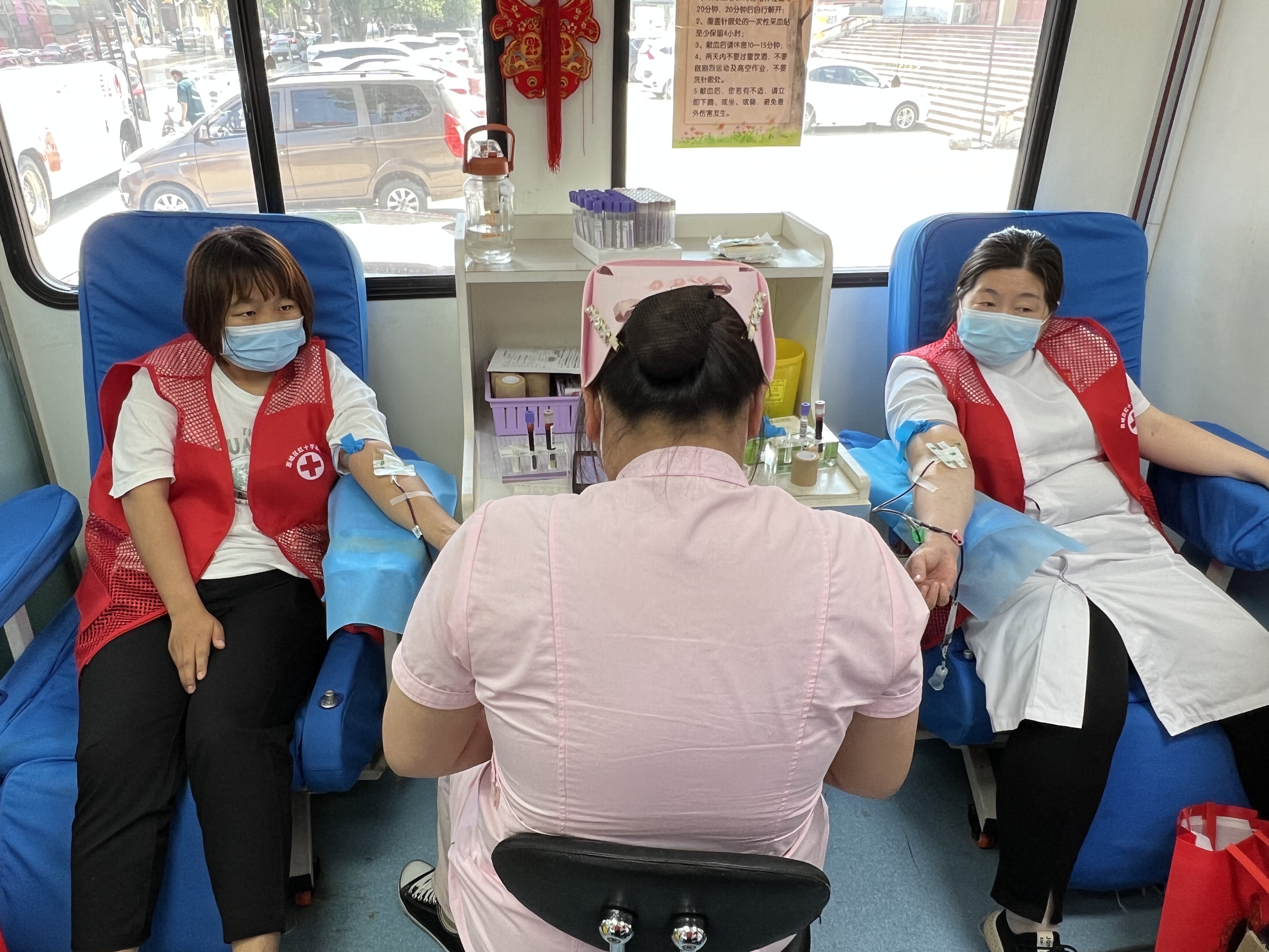 活动现场,由区人民医院中青年业务骨干组成的义诊团队免费为群众测血压、血糖,提供健康咨询。献血屋内,由荣获全国无偿献血奉献奖金奖的献血“老兵”贾荣梅医师带领的医务工作者,带头前去献血,大家撸起袖子,用涓涓血液诠释爱的传递和生命的庇佑。与此同时,区红十字会志愿者走街入户发放了献血知识宣传册,并细心地向群众讲解无偿献血及捐献造血干细胞的意义。累计发放宣传册200余册,受益人数300余人。