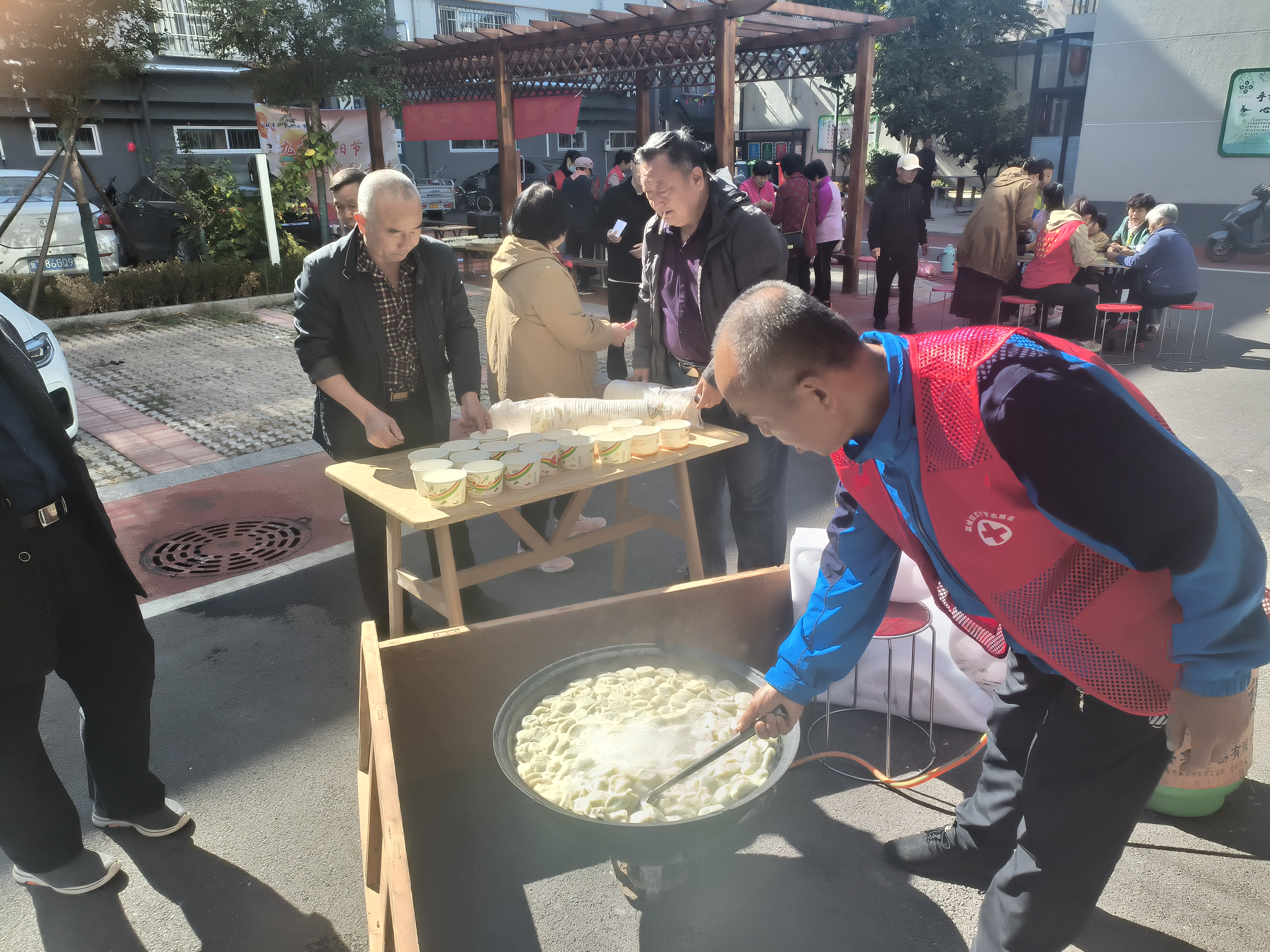 活动现场,首先由幼儿园的小朋友们为爷爷奶奶们带来成语接龙、手指律动和爱心敬茶,小朋友们用自己的方式向长辈们表达了自己对他们的节日祝福,茶杯从小手传递到大手中,大家喝在嘴里,暖在心里。社区志愿者还准备了纸杯弹乒乓球游戏趣味游戏,每个人十个乒乓球,将它们弹入纸杯中,根据弹入数量多少获得不同的礼品,老人们不断地尝试和挑战,玩得兴高采烈,不亦乐乎。红十字志愿者们把提前去菜市场采购好的包饺子食材以及工具摆放齐全,老人们立刻分工合作,切菜、调馅儿、包捏,边包边聊,居民郭大叔擀饺子皮速度极快,被大家一制评为“擀皮王”,现场欢声笑语,其乐融融。在大家的齐心协力下,一个个薄皮大馅儿的饺子出锅,大家开心地品尝着香喷喷的饺子,都喜在眉梢,暖在心里。