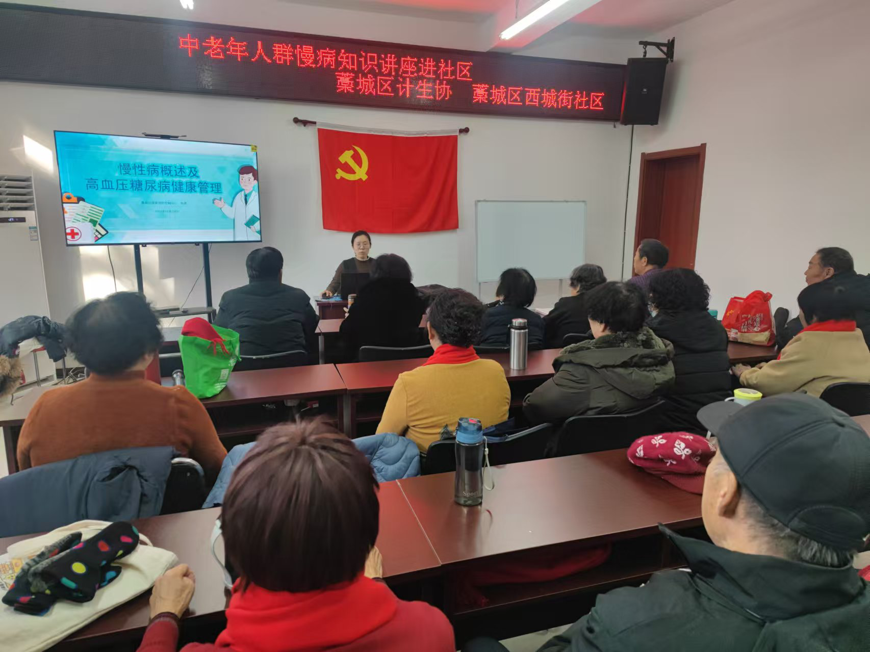 为大力弘扬“人道、博爱、奉献”的红十字精神,向社区中老年人普及慢性病防治知识,进一步提高居民慢性病防控意识,1月2日,藁城区西城街社区红十字会联合藁城区计生协,为辖区中老年人及慢性病患者共30余人开展了中老年人慢病健康知识讲座。